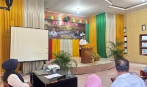 Camat Sukamakmur Azhari SH M.Si sedang memimpin pleno Musrenbang RKPD Tahun 2027, di Aula UDKP Kantor Camat Sulamakmur.